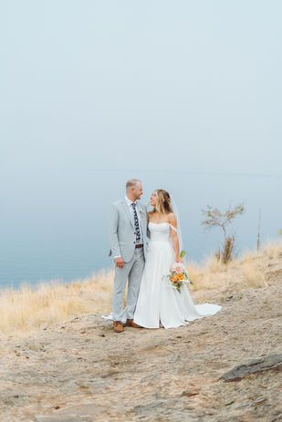 After they exchanged their private vows, it was time to run around for 30 minutes grabbing shots of just the two of them! The smoky haze over the lake made for quite a dramatic background and the soft blue complimented Averys florals so well.