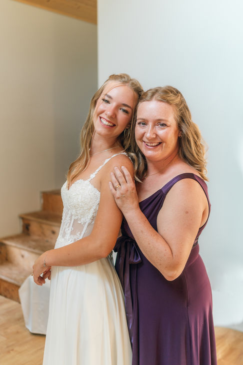 Ava got ready with her bridesmaids at their family cabin on a sunny August morning. I took her dress and some details outside on the front porch to take some photos as the girls touched up their hair and makeup in front of the mirrors inside. Silas and his groomsmen were getting ready 5 minutes away at another family friend's cabin!